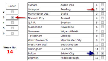 For example: if you want to nap 4 numbers say 10, 25, 30, 40. You will click the box by the side of 4 below UNDER. You will then click boxes 10, 25, 30 and 40 on the grid beside the fixture grid.